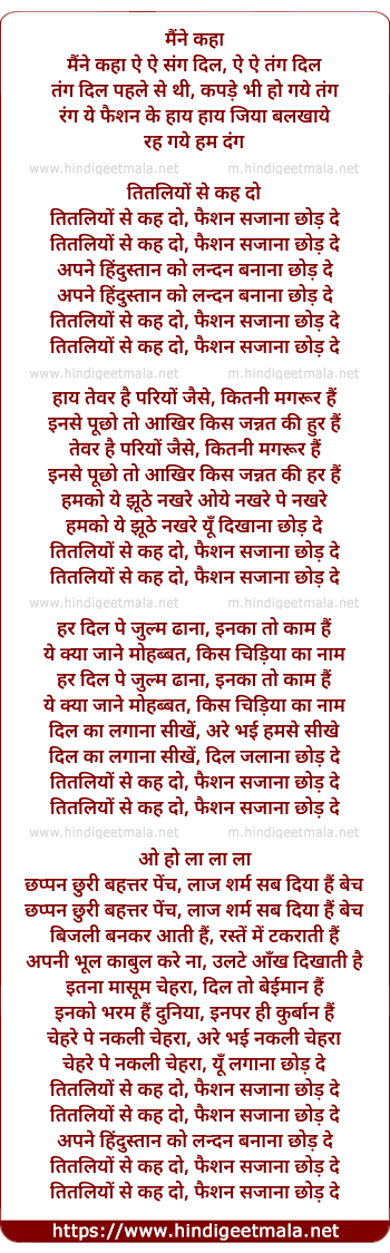 titaliyo se kah do, fashion sajana chhod de