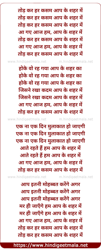 Lyrics of Tod Kar Har Qasam Aap Ke Shaher Me - तोड़ कर हर कसम आप के शहर में