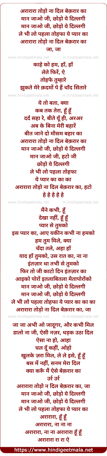 Lyrics of Todo Na Dil Beqaraar Kaa - तोड़ो ना दिल बेक़रार का