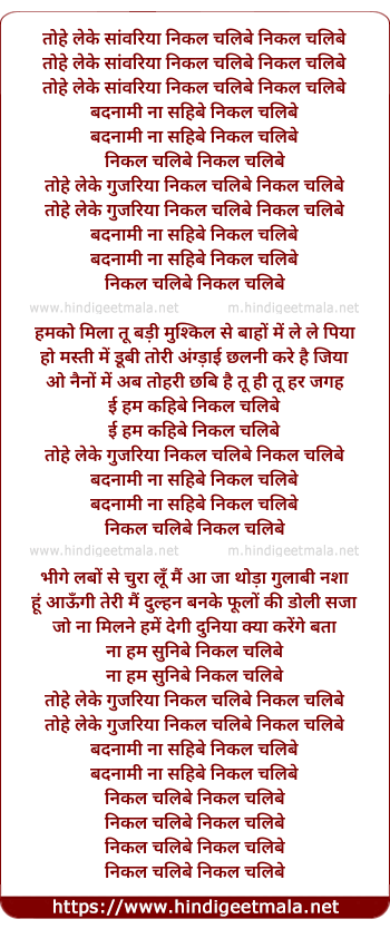 tohe leke gujariya nikal chalibe nikal chalibe