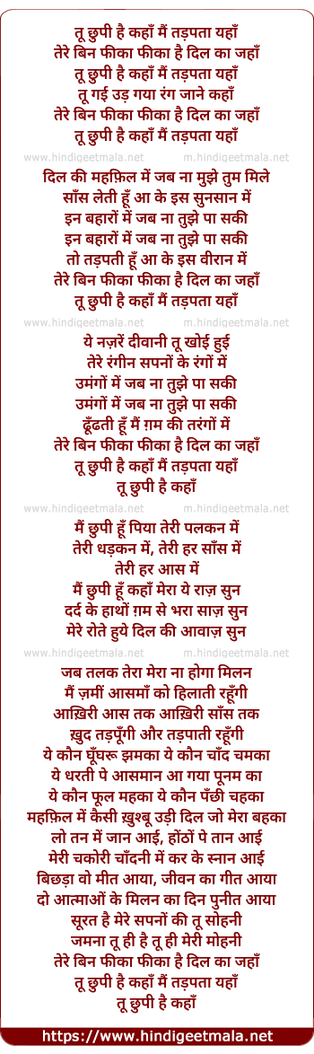 Lyrics of Too Chhupi Hai Kaha - तू छुपी है कहाँ