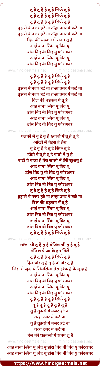 Lyrics of Too Hai Too Hai Sirf Too Hai - तू है तू है सिर्फ तू है