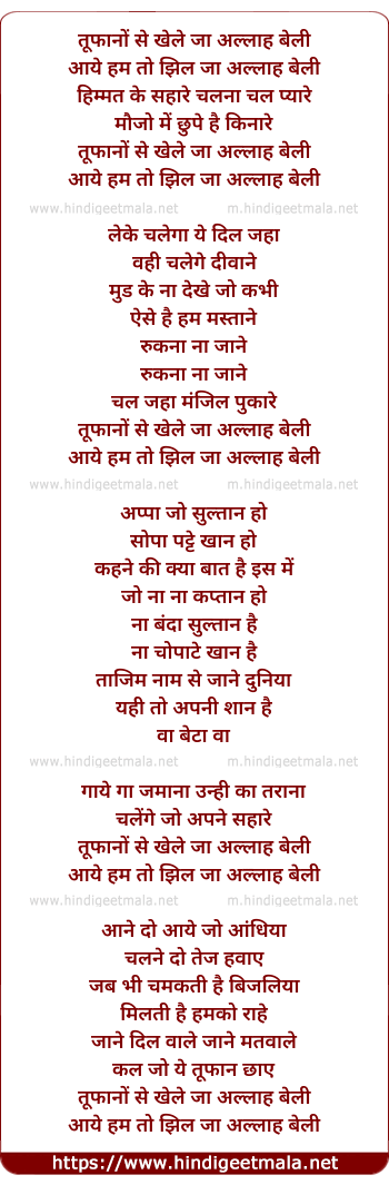 Poetic Translation - Lyrics of Toofano Se Kheleja Allah Beli
