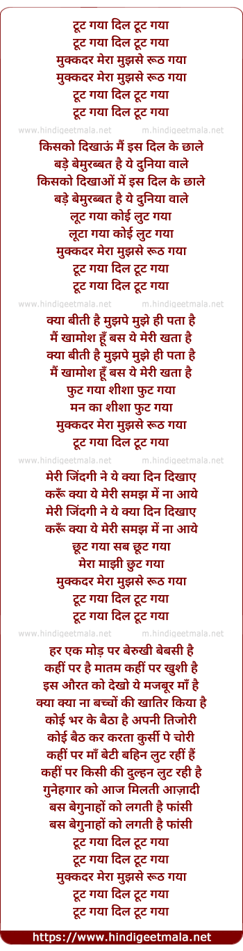 Lyrics of Toot Gaya Dil - टूट गया दिल