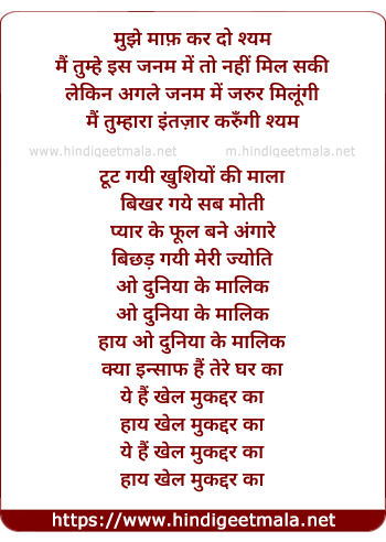 Lyrics of Toot Gayi Khushiyo Ki Mala - टूट गयी खुशियों की माला