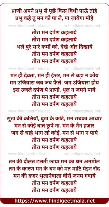 Lyrics of Tora Man Darpan - तोरा मन दर्पण