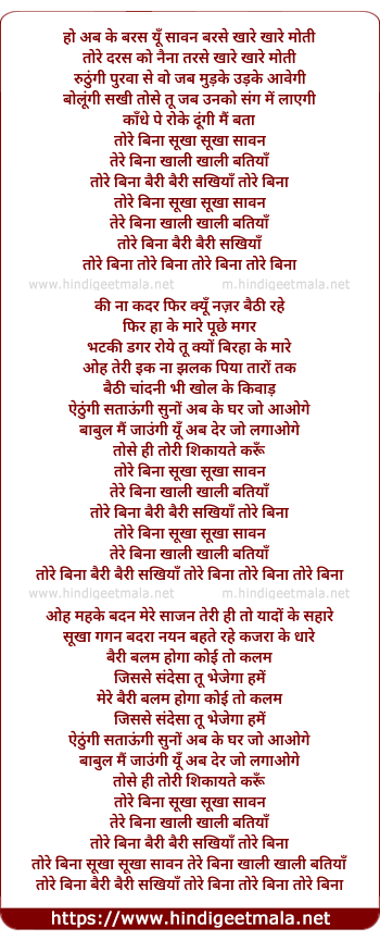Lyrics of Tore Binaa Sukha Sukha Savan - तोरे बिना सूखा सूखा सावन