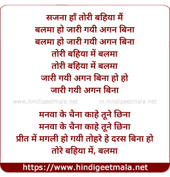Lyrics of Toree Bahiya Mai - तोरी बहिया मैं