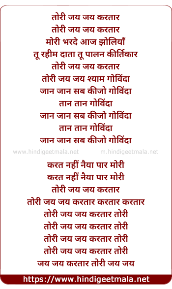 Lyrics of Tori Jay Jay Kartar - तोरी जय जय करतार