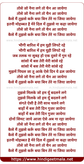 Lyrics of Tose Jo Naina Laage - तोसे जो नैना लागे