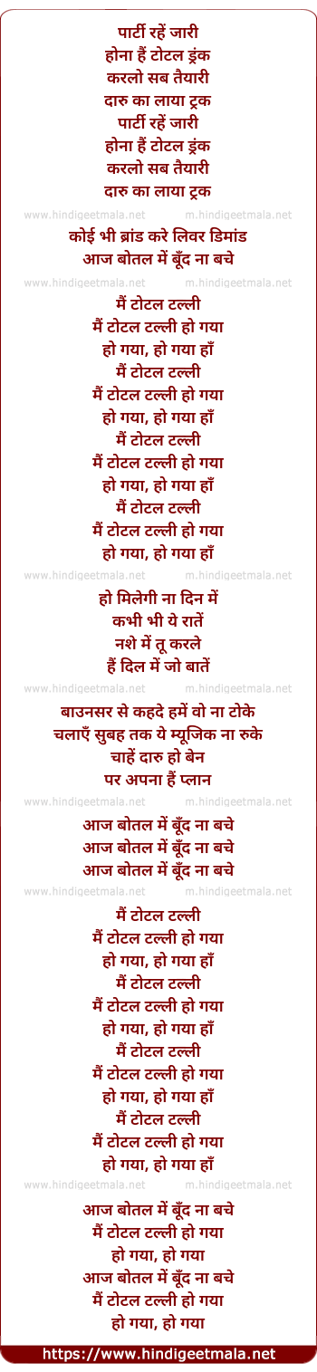 Lyrics of Total Talli - टोटल टल्ली