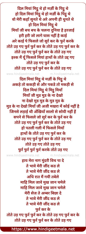 dil miyan mitthu the marzi ke pitthu the