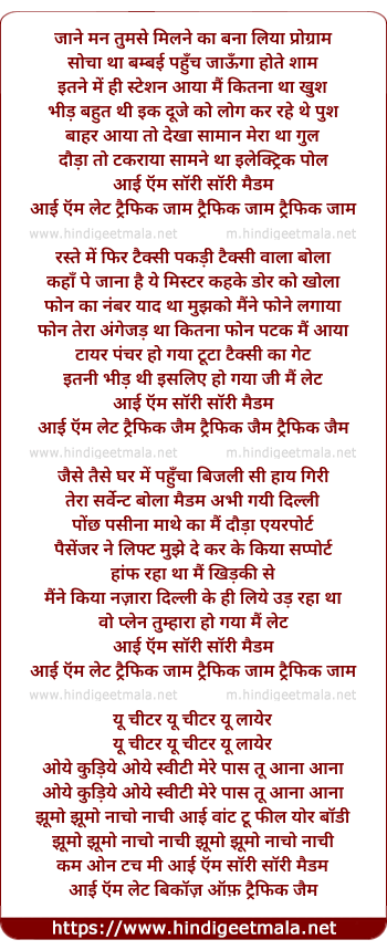 Lyrics of Traffic Jam Sorry Traffic Jam - ट्रैफिक जाम सॉरी ट्रैफिक जाम