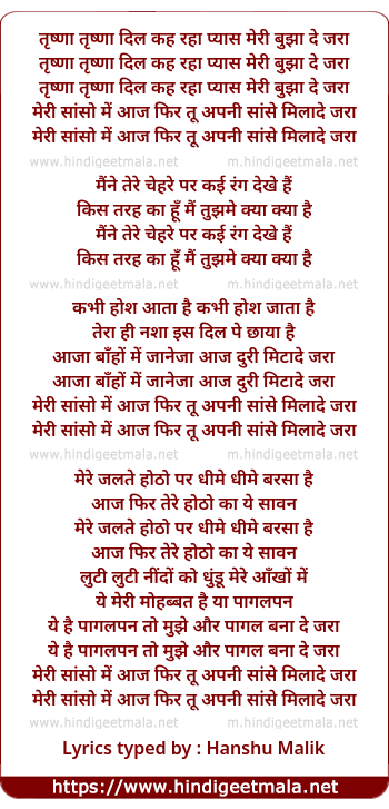 Lyrics of Trishna Trishna Dil Kah Raha - तृष्णा तृष्णा दिल कह रहा