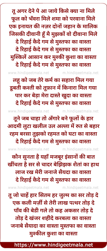 Lyrics of Tu Agar Dene Pe Aa Jaye - तू अगर देने पे आ जाये