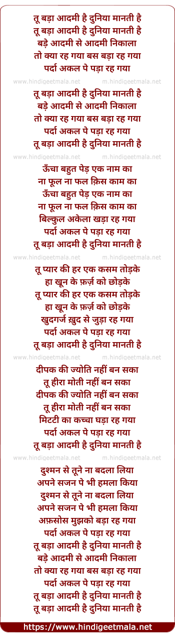 Lyrics of Tu Bada Aadmi Hai - तू बड़ा आदमी है