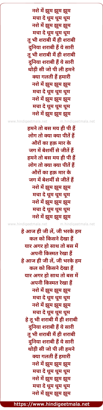 Lyrics of Tu Bhi Sharabi Mai Bhi Sharabi - तू भी शराबी मैं ही शराबी