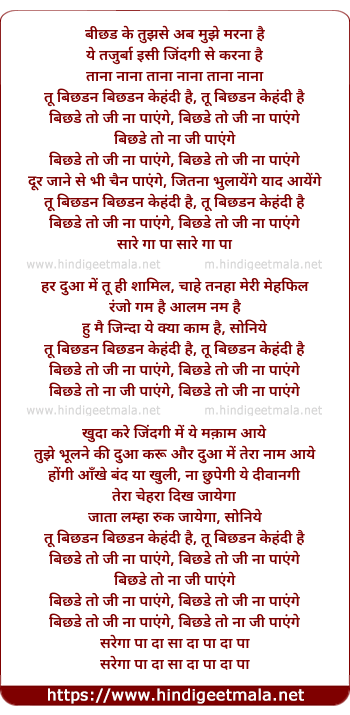 Lyrics of Tu Bichdan Bichdan Kahndi Hai - तू बिछडन बिछडन केहंदी है