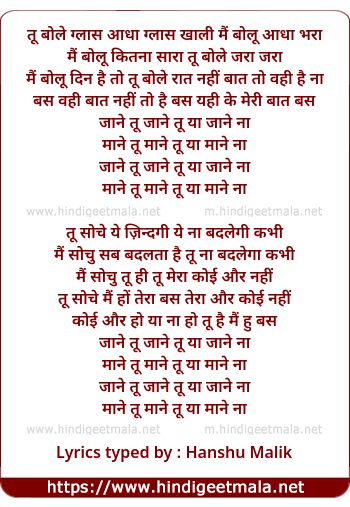 Lyrics of Tu Bole, Main Boloon - तू बोले, मैं बोलू