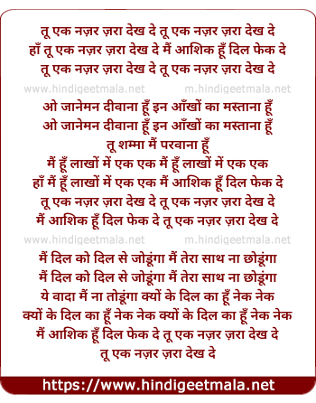 Lyrics of Tu Ek Nazar Zara Dekh De - तू एक नज़र ज़रा देख दे