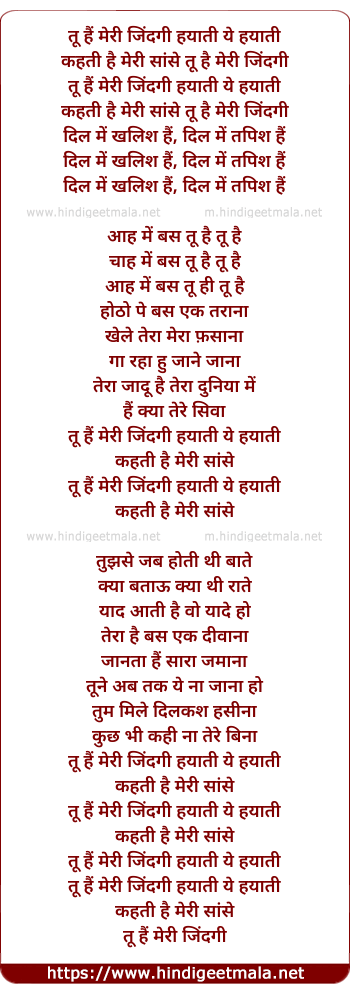 Lyrics of Tu Hai Meri Zindagi, Hayaati Ye Hayaati - तू हैं मेरी जिंदगी हयाती ये हयाती
