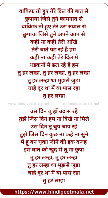 tu har lamha, tu har lamha, tu har lamha