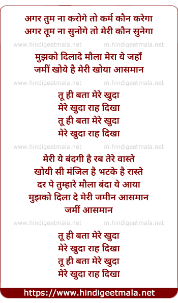 Lyrics of Tu Hi Bata Mere Khuda - तू ही बता मेरे खुदा