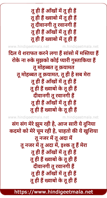 Lyrics of Tu Hi Hai (Remix) - तू ही हैं आँखों में तू ही हैं