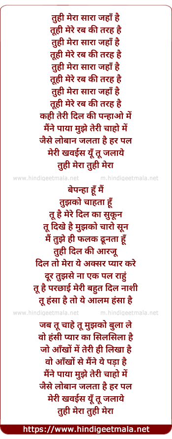 tu hi mera sara jaha hai