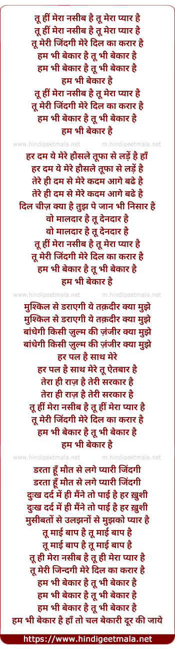 Lyrics of Tu Hi Mera Nasib Hai - तू हीं मेरा नसीब है