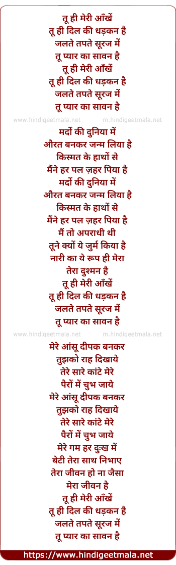 Lyrics of Tu Hi Meri Aankh - तू ही मेरी आँखें
