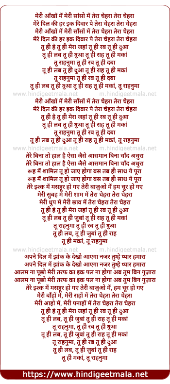 meri dil ki har ik diwar pe tera chehra tera chehra