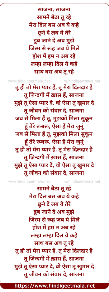 Lyrics of Tu Hi To Mera Pyaar Hai - साजना, साजना