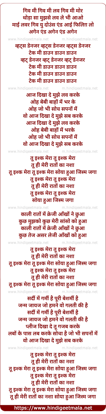 tu ishq mera tu ishq mera tu hi meri raato ka nasha