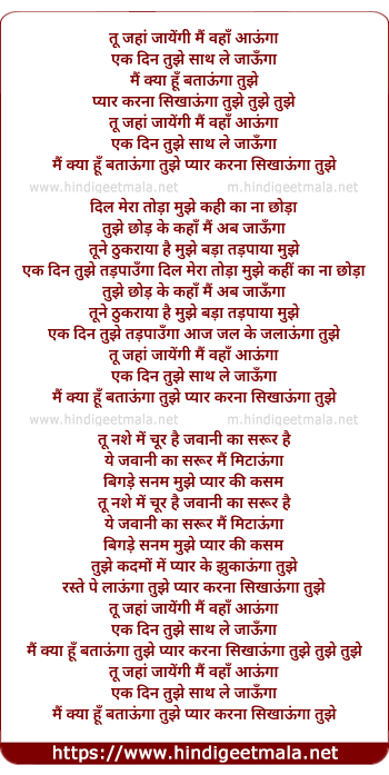 Lyrics of Tu Jahan Jayegi Mai Wahan Aaunga - तू जहां जायेंगी मैं वहाँ आऊंगा