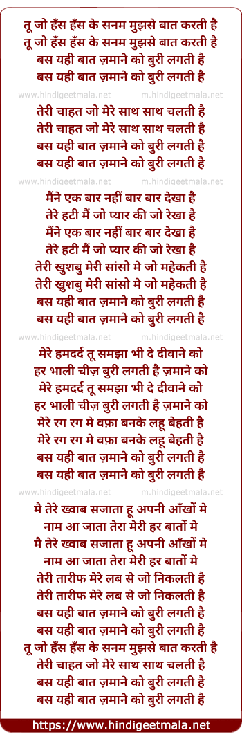 Lyrics of Tu Jo Hans Hans Ke Sanam Mujh Se Bat Karti Hai - तू जो हँस हँस के सनम मुझसे बात करती है