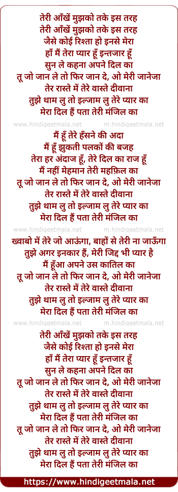 tu jo jaan le toh phir jaan de, o meri jaanejaa