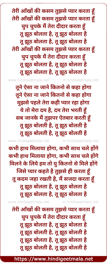 Lyrics of Tu Juth Bolta Hai (Teri Aankho Ki Kasam Tujhse Pyar Karta Hu) - तू झूठ बोलता है