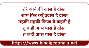 Lyrics of Tu Kahi Aas Paas Hai Dost - त कही आस पास है दोस्त