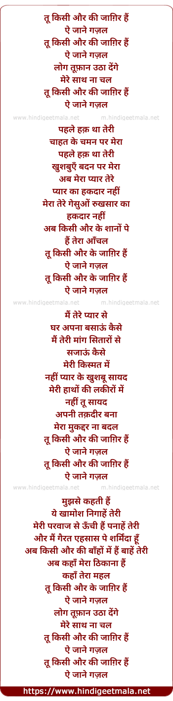 Lyrics of Tu Kisi Aur Kee Jaagir Hai - तू किसी और की जाग़िर हैं