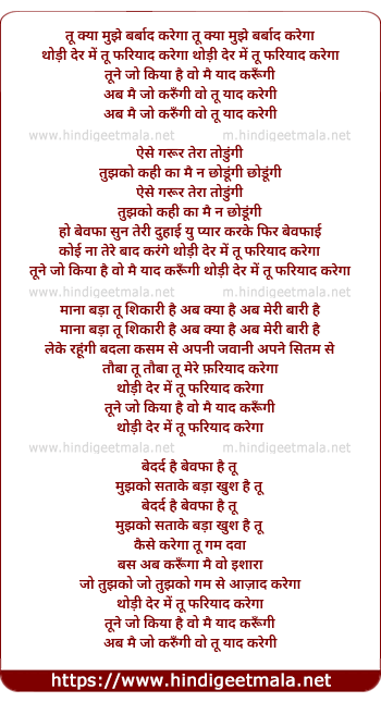 Lyrics of Tu Kya Mujhe Barbaad Karega - तू क्या मुझे बर्बाद करेगा