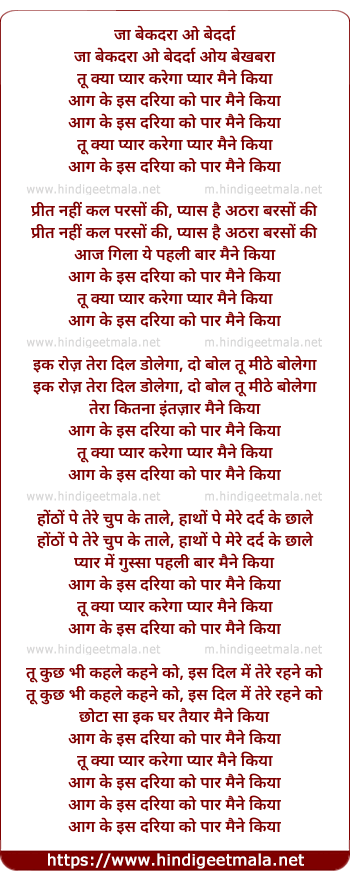 Lyrics of Tu Kya Pyar Karega Pyar Maine Kiya - तू क्या प्यार करेगा प्यार मैंने किया