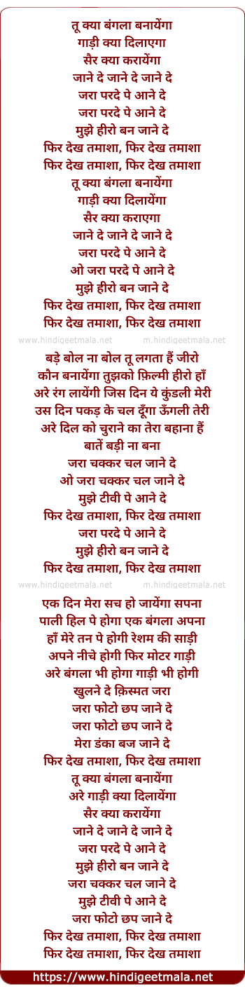 Lyrics of Tu Kyaa Bangla Banayega - तू क्या बंगला बनायेंगा