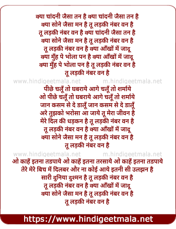 Lyrics of Tu Ladki Number One Hai - तू लड़की नंबर वन है