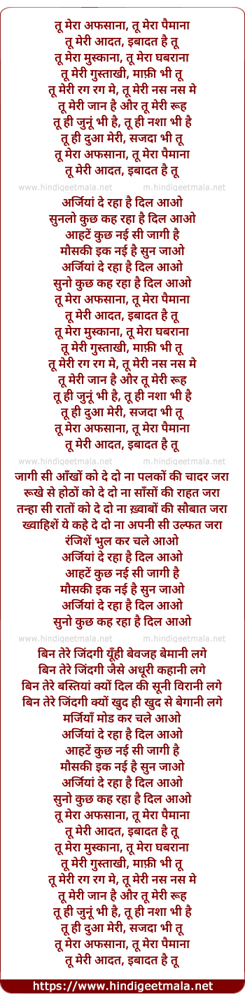 tu mera afsana, tu mera paimana