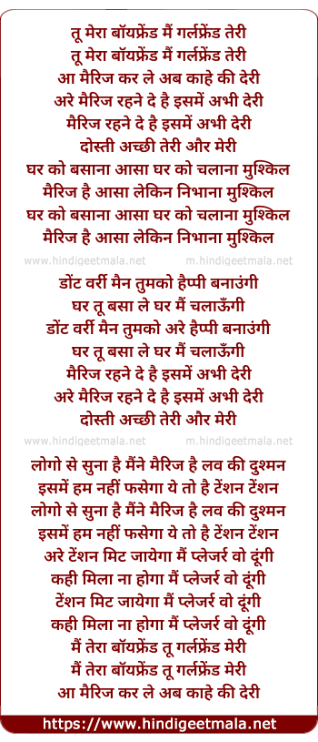 Lyrics of Tu Mera Boyfriend - तू मेरा बॉयफ्रेंड