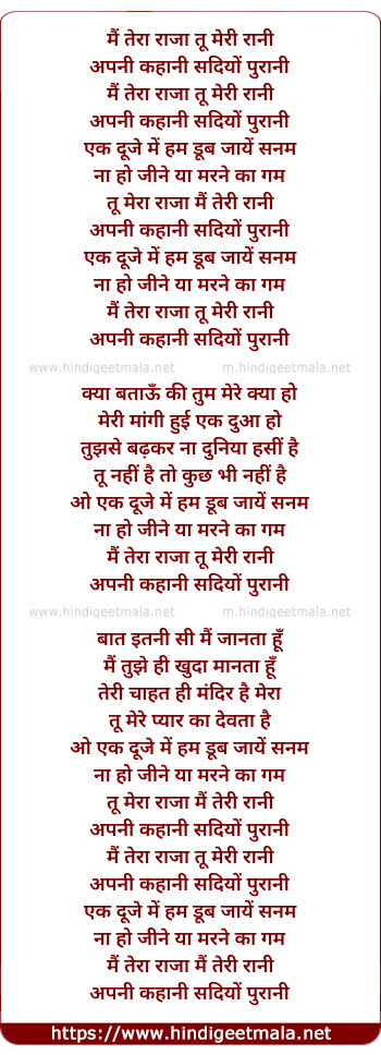 Lyrics of main Tera Raja Tu Meri Rani - मैं तेरा राजा तू मेरी रानी