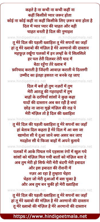 Lyrics of Tu Mere Dil Ki Pehali Khwaahish - तू मेरे दिल की पहली ख्वाहिश
