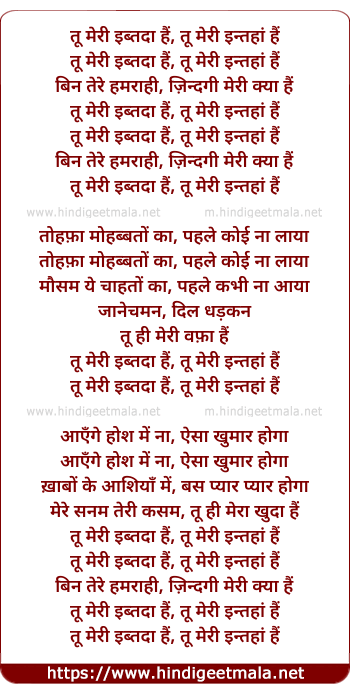 Lyrics of Tu Meri Ibtada Hai (Male) - तू मेरी इब्तदा हैं, तू मेरी इन्तहां हैं