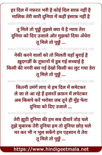 Poetic Translation - Lyrics of Tu Mile To Puchu Tujhse - तू मिले तो पूछूँ तुझसे
